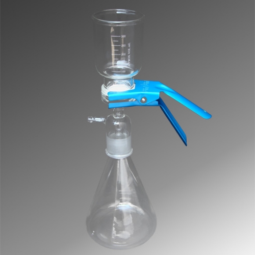 溶剂过滤瓶是化学实验室常备的装置。它可根据操作者的需要,选用不同材质,不同过滤孔径的过滤膜,达到除去溶剂内杂质、提纯、消菌的作用。